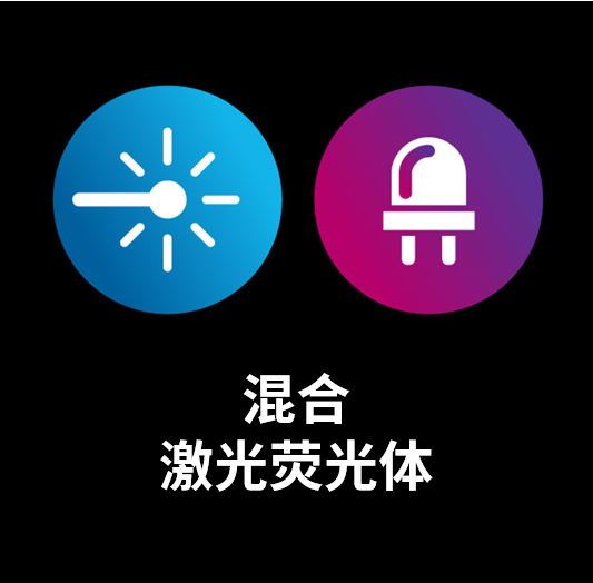![]() 采用蓝色激光二极管,照射穿过荧光轮 |